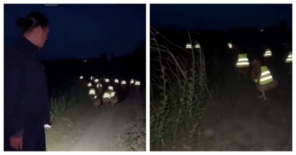 Китайский фермер вывел безопасность своих куриц на новый уровень, изготовив для них светоотражающие жилеты. Теперь птиц сложнее потерять из виду во время выгула.