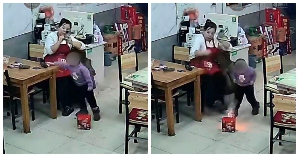 Юный житель Китая решил начать праздновать Новый год раньше времени. Мальчик поджег пиротехнику прямо в семейном заведении.