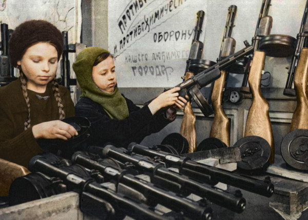 Пятнадцатилетние девушки Нина Николаева и Валя Волкова собирают пистолеты-пулеметы ППД в блокадном Ленинграде, 1942 год.Детям пришлось столкнуться с невероятными трудностями. Они работали на заводах, помогали в колхозах и на полях, сражались в партизанских отрядах и даже участвовали в боевых действиях на фронтах. Многие вынуждены были выживать на оккупированных территориях.