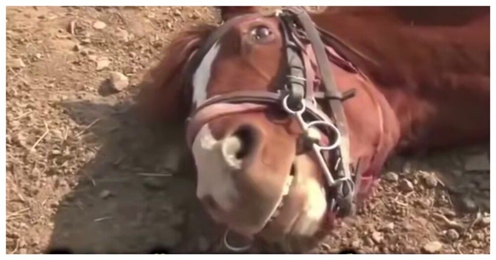 Знакомьтесь - ленивый конь по кличке Том. Стоит только кому-то сесть ему на спину или заговорить о работе, как Том падает и начинает "умирать".