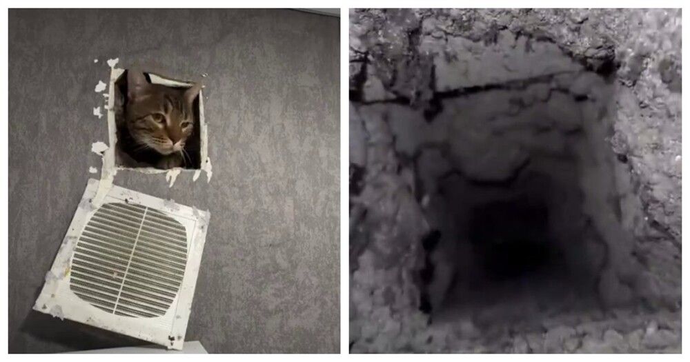Домашний кот выломал решетки вентиляции у хозяев и соседей и отправился исследовать новую территорию.