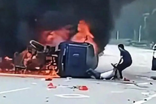 В китайском городе Шаогуань 35-летний госслужащий Чжун Вэй спас водителя из объятого пламенем автомобиля. Инцидент произошел после столкновения легковушки с бензиновым трициклом. Увидев пламя, чиновник, работающий руководителем группы в сельскохозяйственном отделе городской администрации, бросился на помощь.