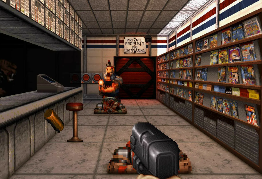 5. Создатели сделали всё, чтобы уровни в игре были как "живые". Туалеты, стрип-клубы, кинотеатры, барные стойки, взрывающиеся стены - всё это делало карту не просто декорацией, а полноценной игровой площадкой. "Doom" смотрелся рядом как мрачный брат-отшельник, хотя и от "Дума" я также дико фанател в свое время.