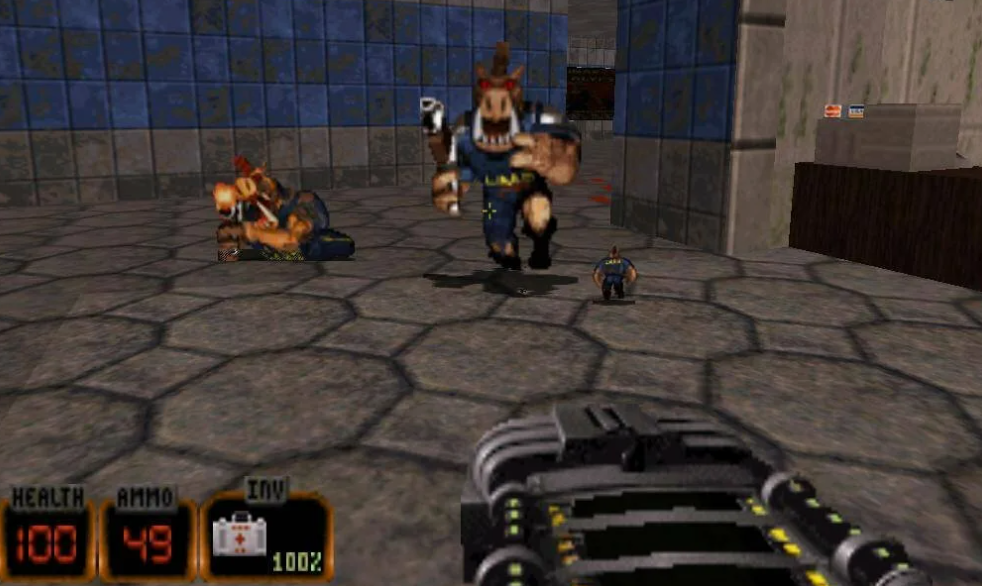 4. В основе "Duke Nukem 3D" лежит движок "Build" от Кена Сильвермана. Он не был настоящим 3D, как "Quake", но позволял делать уровни, где можно было разрушать, прыгать, заглядывать под юбки... шучу (или нет?). Это был движок с душой.