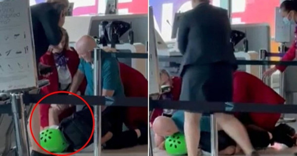 На видео несколько сотрудниц, одетых в униформу, удерживают мужчину в переполненном терминале. Как оказалось, ему отказали в посадке, и он начал скандалить и кричать. На место происшествия прибыли полицейские. Нарушителя порядка доставили в участок в Брисбене.