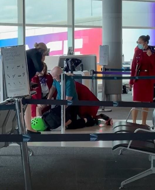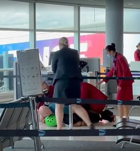 8 мая около 11:20 утра в аэропорту Брисбена, Австралия, путешественники стали свидетелями неожиданной сцены. Члены экипажа авиакомпании Virgin схватили пассажира в ярко-зелёном шлеме и повалили на пол.