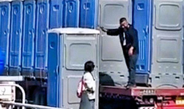 Рабочие случайно прокатили туалетную кабинку с женщиной внутри несколько десятков километров. Инцидент произошел в одном из населенных пунктов Китая.