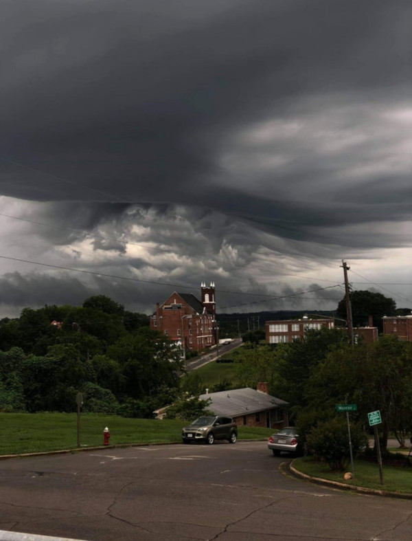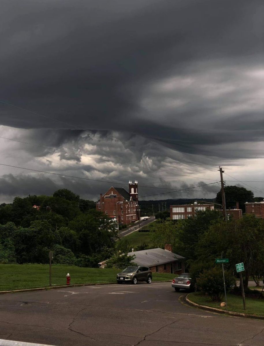 Над городом нависли штормовые тучи. Кажется, что это кадр из какого-то ужастика или фильма о глобальной катастрофе
