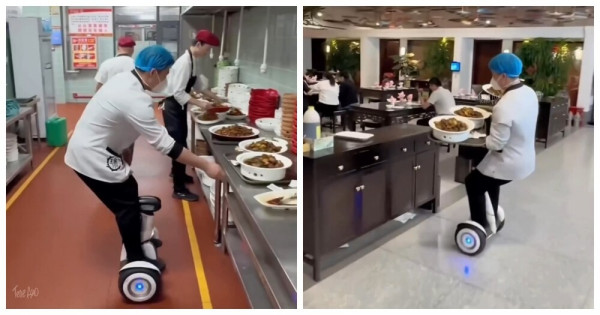 В Китайском ресторане официанты передвигаются между столиками не пешком, а на гироскутерах