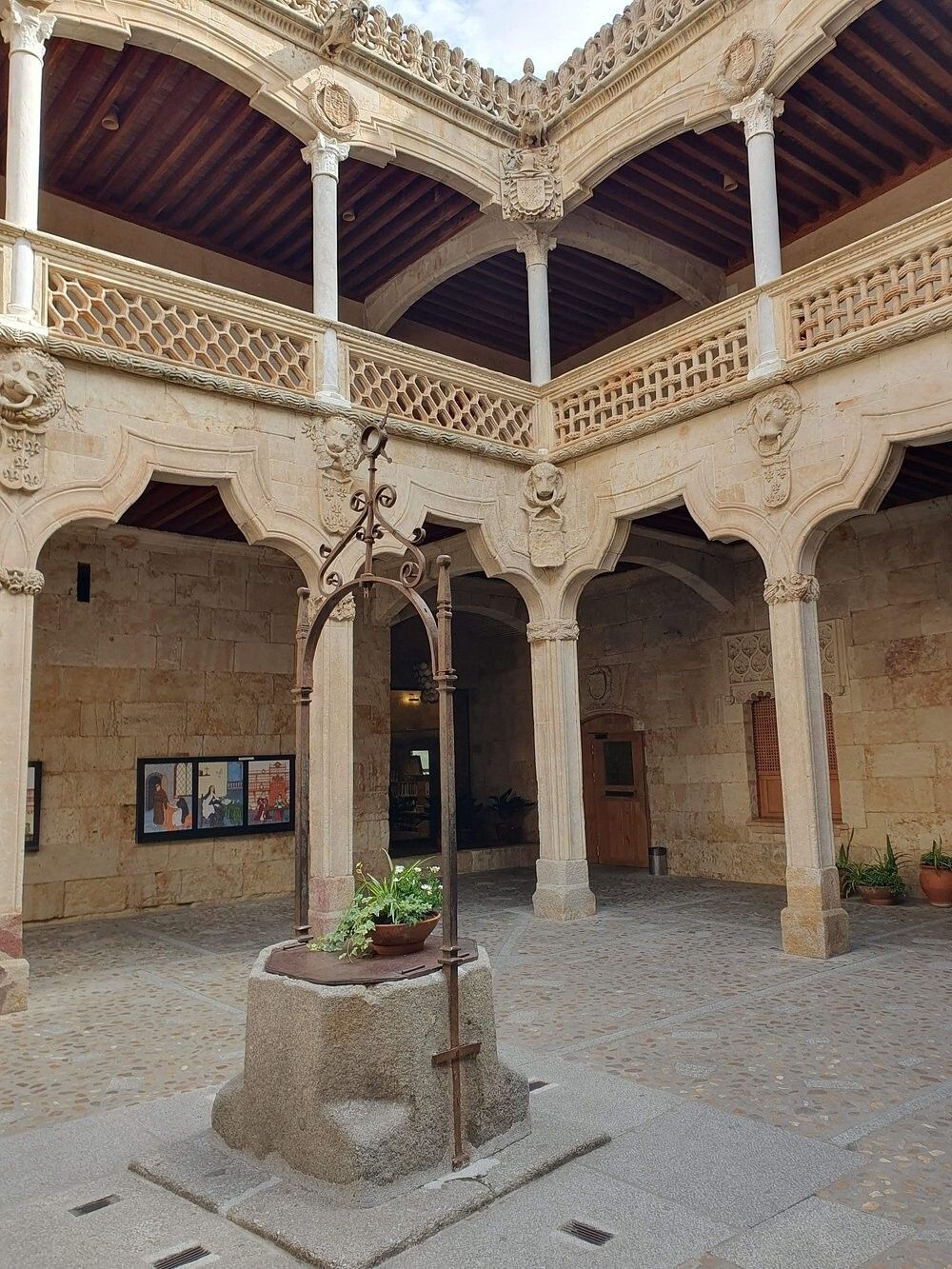 Когда-то над городом возвышалась величественная башня, но её намеренно укоротили на треть, поскольку слишком уж явно она напоминала о власти знатного рода. Внутри просторный двор с колодцем, некогда снабжавшим дом водой. Балконы украшены медовыми сотами и плетёными узорами - отголосками мавританского влияния. А по краю крыши выстроились геральдические лилии и химеры-горгульи, словно стерегущие древние тайны.