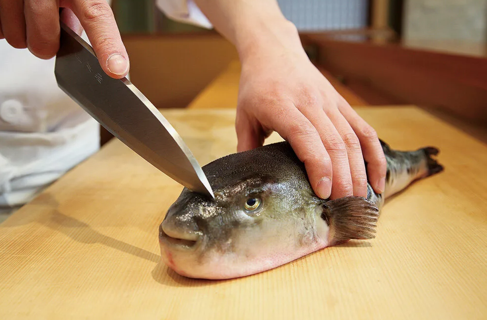 Для этого нужно действительно тонкое мастерство, потому что яд фугу в 1200 раз опаснее того же цианида. И раньше травились не просто фугу, а от разделочных досок, на которых разделывали фугу, а потом нечаянно порезали овощи. И зачем так страдать? Потому что Японию долго время кормило море, ввиду малого количества полей для сельского хозяйства. Приходилось учиться упрямо есть все.