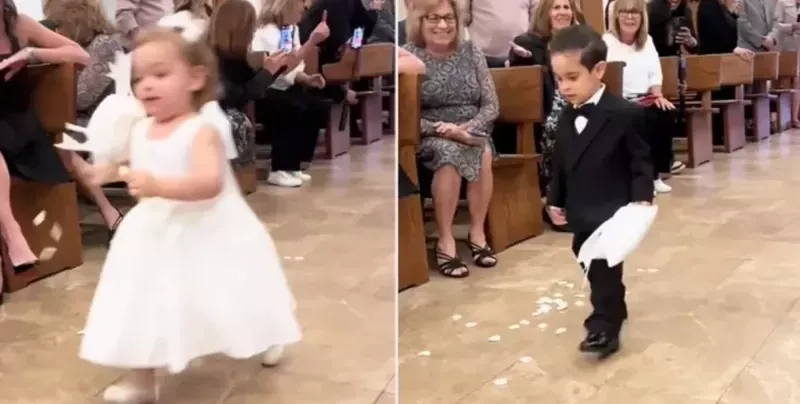Маленький Лоренцо, который должен был принести молодоженам кольца, и его кузина Джиана Сальмьери, которая несла лепестки цветов, репетировали церемонию дома, но в важный день все пошло не по плану.Джиана от волнения перевернула корзину, и лепестки роз высыпались сразу на пол. Лоренцо, который шел сразу за ней, был ошеломлен, увидев гору цветов посреди прохода.