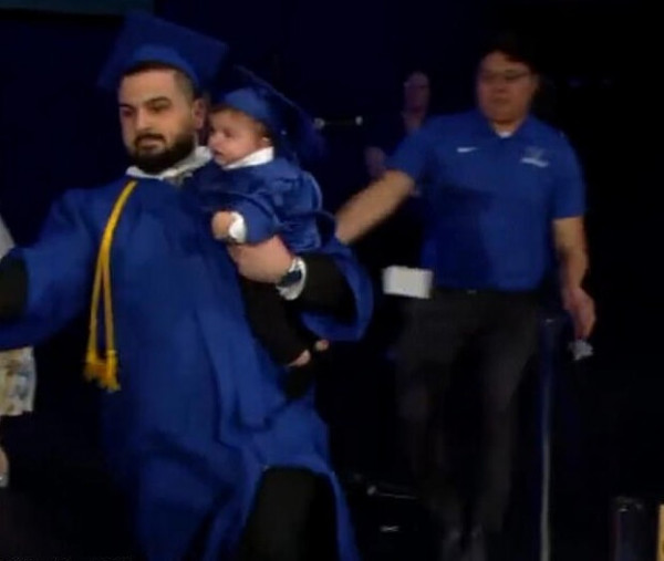 Полиция пыталась задержать выпускника во время церемонии вручения дипломов в университете Буффало в Нью-Йорке. Причина? Он поднялся на сцену с маленьким сыном.