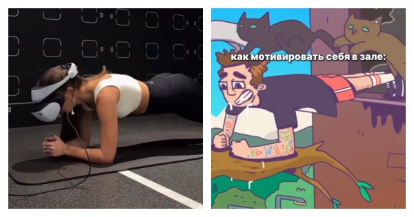 С их помощью девушка придумала лайфхак, как не сдаваться в зале. Например, при становой тяге в виртуальной реальности она поднимает машину, чтобы освободить котиков, а в планке становится "мостом", по которому кошки убегают с горящего здания.