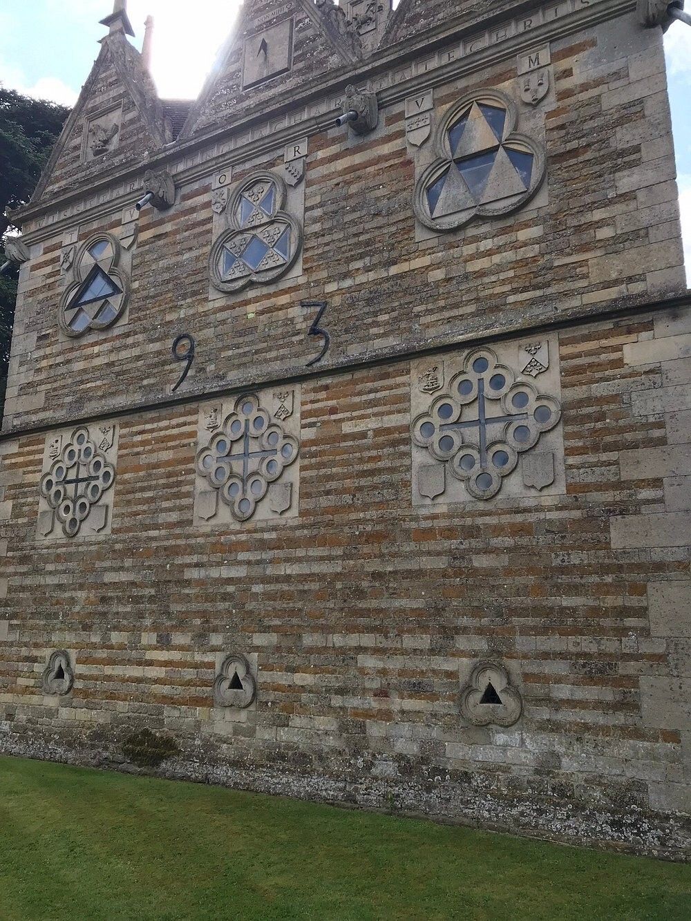 Каждая деталь здесь отсылает к Святой Троице и католической мессе. На трёх стенах - по три окна на каждом из трёх этажей, три фронтона и даже треугольная труба, украшенная трилистниками - фамильным символом Трешамов.