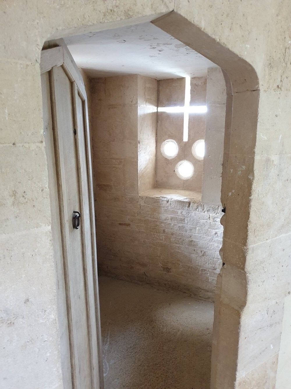 Внутри дом разделён на три шестиугольные комнаты (по одной на этаж), а угловые пространства образуют треугольники. В одном из них - винтовая лестница, а два других служат крошечными комнатками.