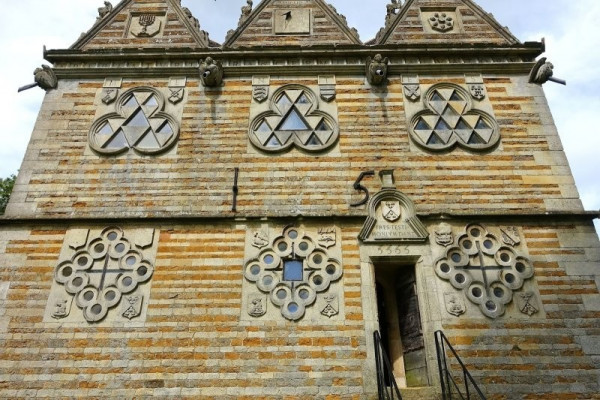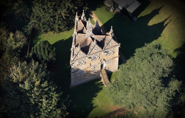 Выйдя на свободу в 1593 году, Трешам приступил к строительству домика-святилища, который стал символом его страданий. В результате появился этот небольшой, но яркий дом, украшенный датами, эмблемами, библейскими цитатами, гербами и искусно вырезанными горгульями.