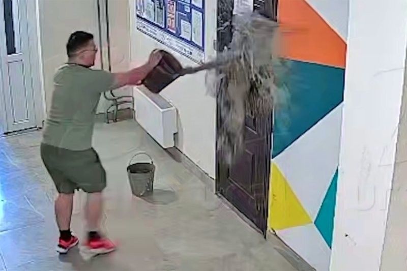 Житель Екатеринбурга вылил несколько ведер грязи на дверь управляющей компании (УК) за потоп на паркинге. Речь идет о доме, расположенном на улице Краснолесья - недавно из-за засора там залило подземную стоянку. Несмотря на то, что коммунальщики откачали часть воды, она продолжает слабо течь.Вчера один из жильцов пришел в офис управляющей организации и пригрозил, что если проблему не устранят полностью, он устроит потоп у них. На следующий день мужчина решил нанести коммунальщикам визит, взяв ведра с грязной водой. На записи, сделанной камерой видеонаблюдения, екатеринбуржец сначала выламывает ручку двери офиса, а затем обливает дверь двумя ведрами грязи, после чего уходит. Сотрудники управляющей компании написали на жильца заявление в полицию.