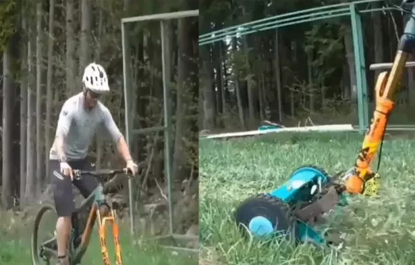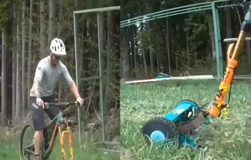 Мужчина сделал гибрид велосипеда и газонокосилки и продемонстрировал его в деле.