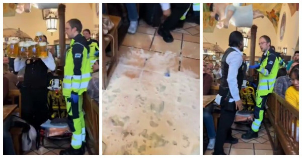 В знаменитом мюнхенском пивном заведении "Хофбройхаус" произошел инцидент: официант, работающий там, умудрился разбить сразу десять пивных кружек и попытался переложить вину на прибывшего медика скорой помощи.