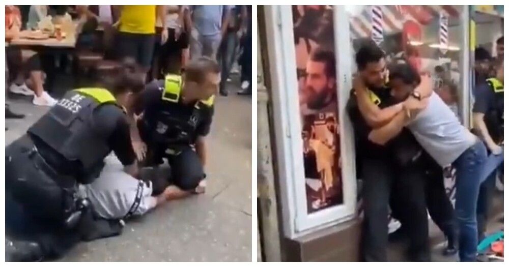 Трое опытных сотрудников немецкой полиции пытаются задержать мигранта, который преследует местных жительниц.
