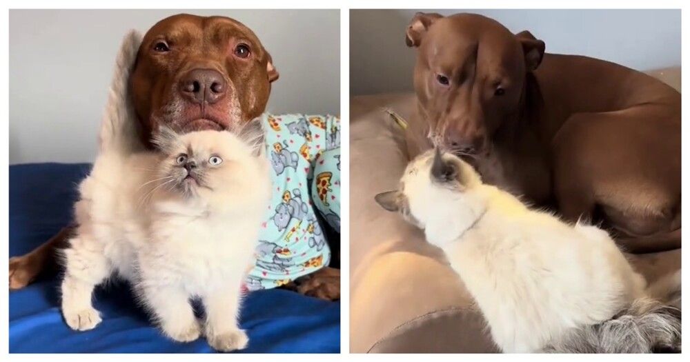 Кто сказал, что кошки и собаки - заклятые враги? Они могут быть хорошими друзьями, особенно, если выросли вместе.
