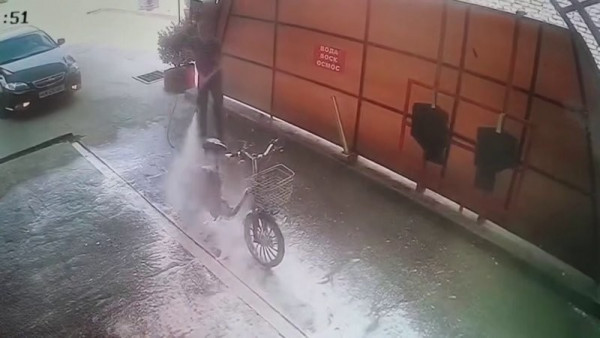 Курьер решил помыть свой электровелосипед, но тот оказался с характером