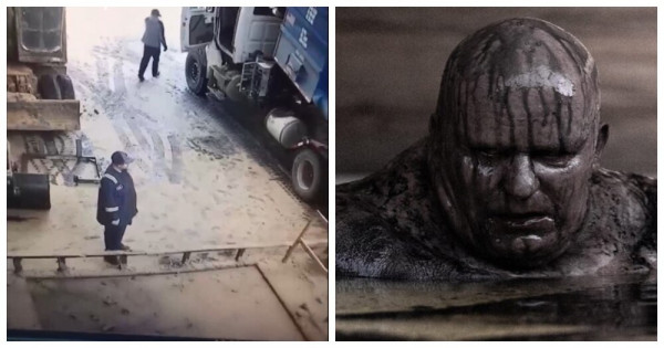 Роковым образом, припорошенный слой пыли, осевший поверх маслянистой субстанции, ввел мужчину в заблуждение. Приняв его за твердую поверхность, он переступил через ограждение и провалился в эту вязкую массу.