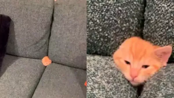 Кот попал в неприятную ситуацию - он застрял в диване и не мог выбраться. В этот момент хозяин снимал его на видео и кажется, будто котейка как бы говорил: "Хватит смеяться, лучше помоги".