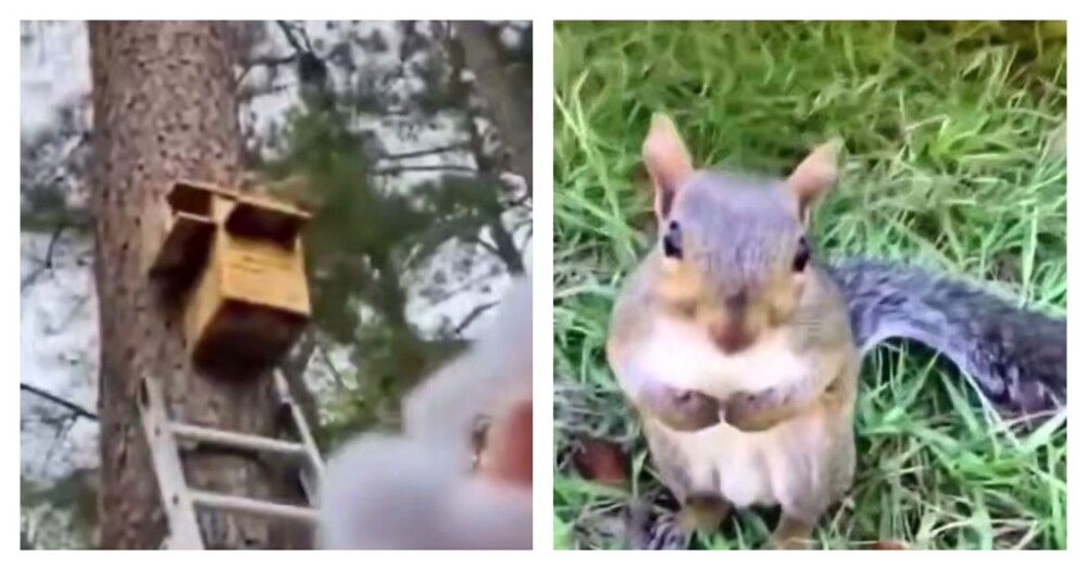 Люди решили помочь белке, которая потеряла свое жильё во время вырубки деревьев. Семья построила для грызуна уютный домик.