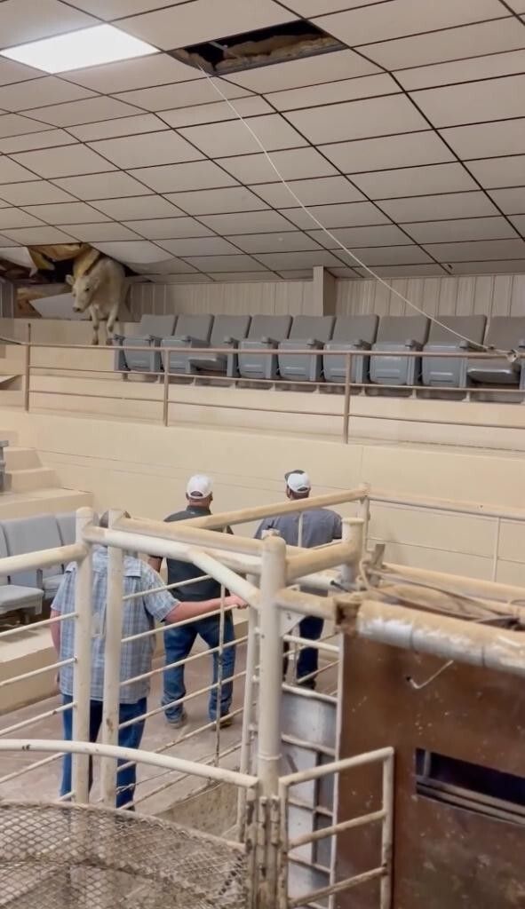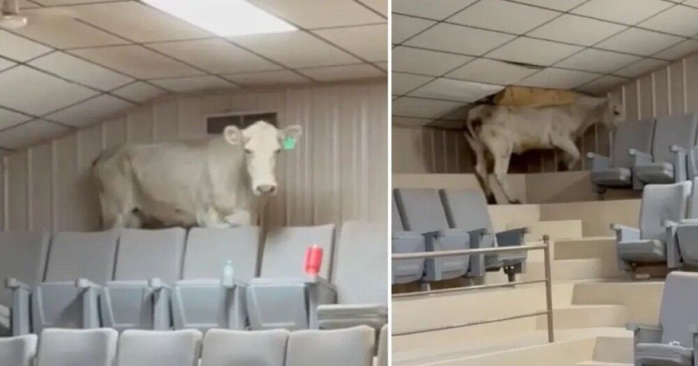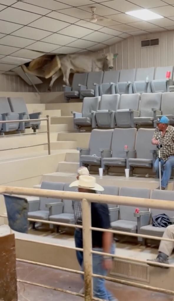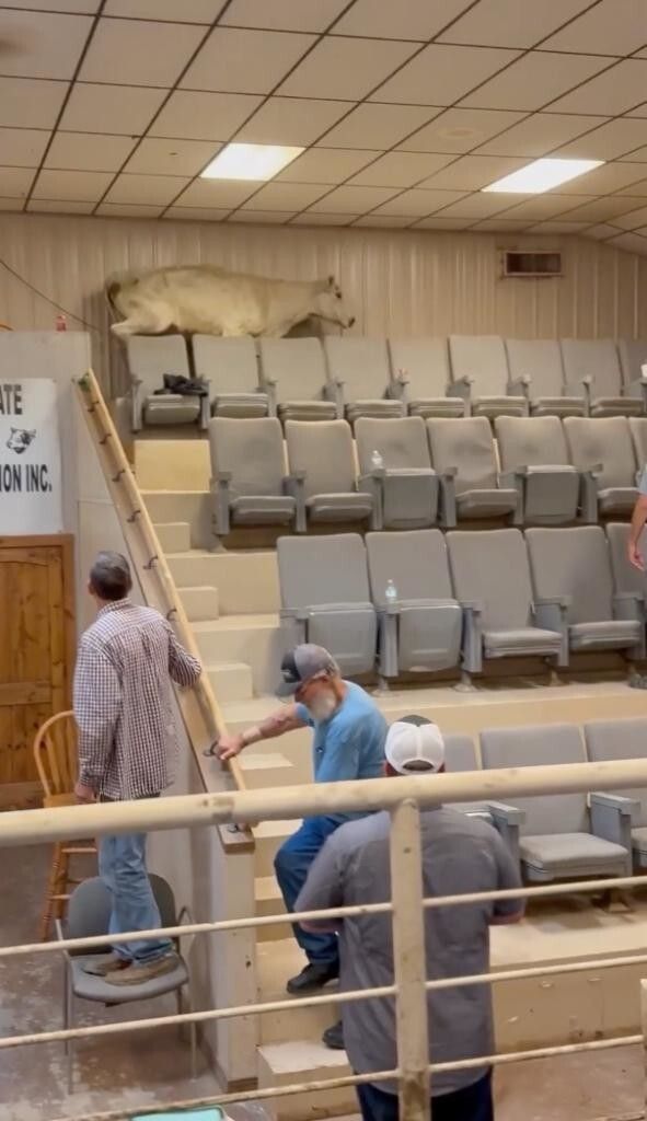 На животноводческом аукционе в Арканзасе, США, корова устроила хаос. Бурёнка ринулась в толпу, запрыгнула на трибуны и стала крушить потолочные плитки. В конце концов, она забилась в угол, где её и поймали.