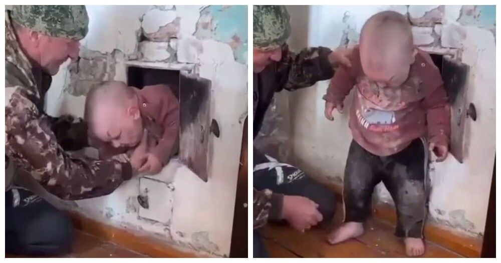 Любознательный малыш захотел исследовать деревенскую печь, однако самостоятельно выбраться из нее не сумел, потребовалась помощь со стороны.