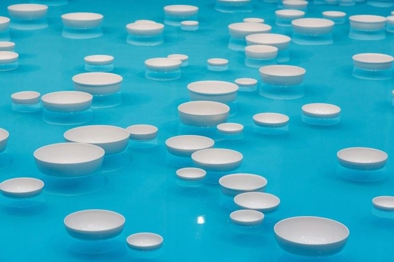 Художница представила проект "clinamen" - уникальную инсталляцию с 18-метровым бассейном, по которому движутся фарфоровые чаши, создавая случайную симфонию звуков без вмешательства человека.