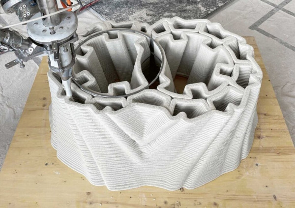 Сооружение, представляющее собой "симбиоз" "архитектуры, культуры и науки", состоит из 32 уникальных колонн, изготовленных методом 3D-печати. Использовалась специальная бетонная смесь, которая послойно распределялась роботами. Состав, разработанный профессором Робертом Флаттом в Институте строительных материалов ETH Zurich, должен был быть достаточно мягким, чтобы скреплять сложные формы, и при этом достаточно быстро затвердевать, чтобы поддерживать последующие слои.