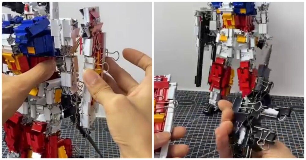 Фаната аниме Gundam собрал небольшого человекоподобного робота из канцелярских зажимов.