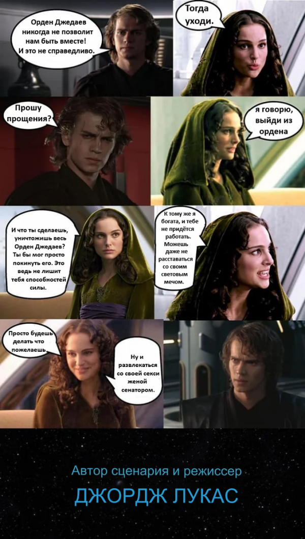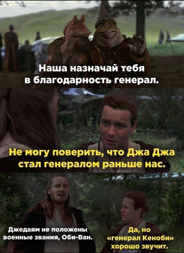 В "Звездных войнах" есть практически все: и драма, и фантастика, и фэнтези, и триллер, и приключения и много чего еще. Конечно же, внушительной частью мира ЗВ стали многочисленные мемы, многие из которых за последние десятилетия, что называется, пошли в "народ"