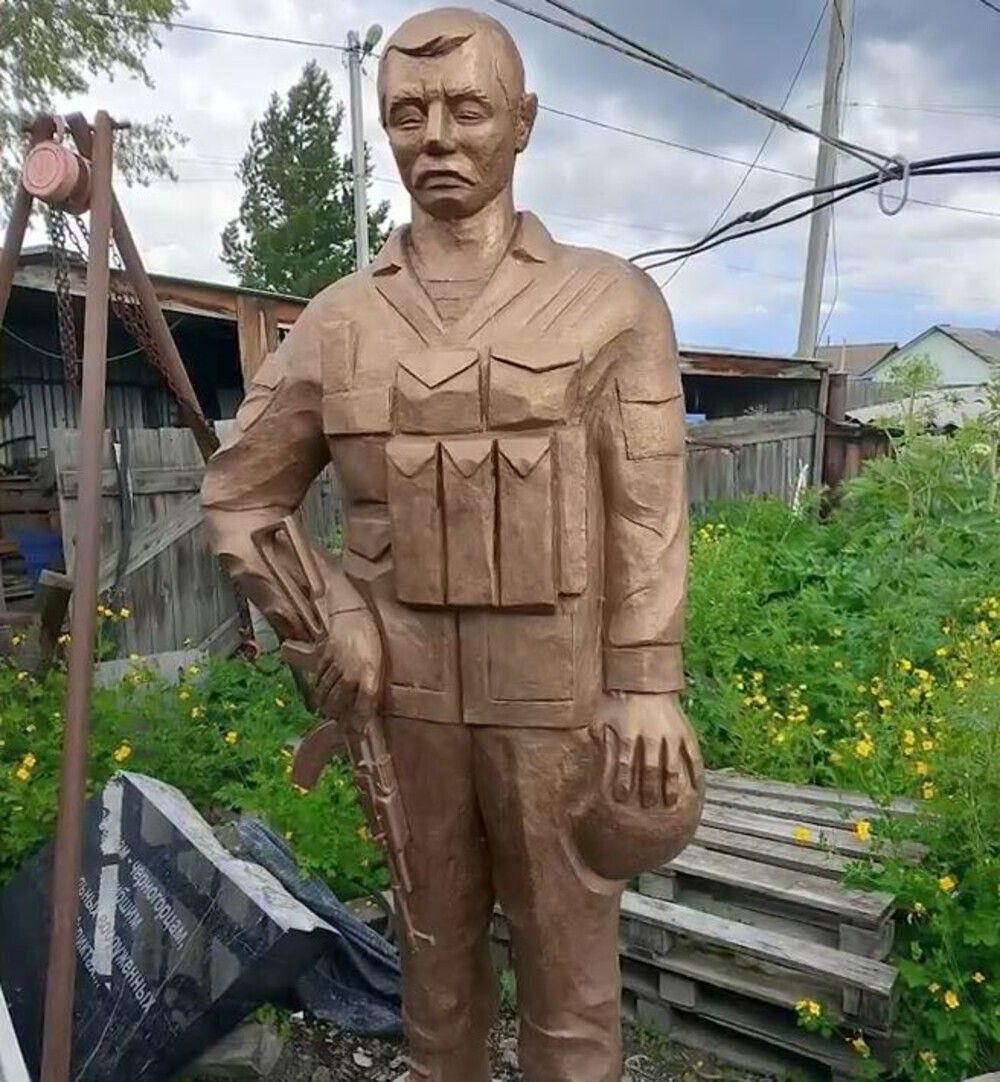 Союз участников локальных конфликтов из Черногорска пожаловался на местного скульптора Андрея Секунду, который недавно представил памятник погибшим воинам. Сейчас этот монумент стоит у "художника" в огороде, потому что заказчики были от его творения в ужасе и забирать отказались.Как рассказал бывший глава Союза участников локальных конфликтов Пётр Синьков, мемориал Секунде заказали более 10 лет назад и тогда же ему показали эскиз монумента. Это был военный с мужественным лицом в разгрузке и с автоматом и каской в руке. Но на выходе получилось то, что получилось.Организация только для того, чтобы исправно переводить скульптору деньги, создала юридическое лицо. И ветераны не требовали от Секунды промежуточных отчётов по работе, поскольку верили его репутации."Мы сначала четыре года выбивали территорию под памятник. Этот памятник должен был быть вылитым, а потом медными листами отделан сверху. В смете всё было заложено. А получилась одна бетонная статуя, зато у него получился джип - последний раз приезжал на новеньком джипе в целлофане, а до этого на разбитой машинюшке ездил", - пожаловался Синьков.