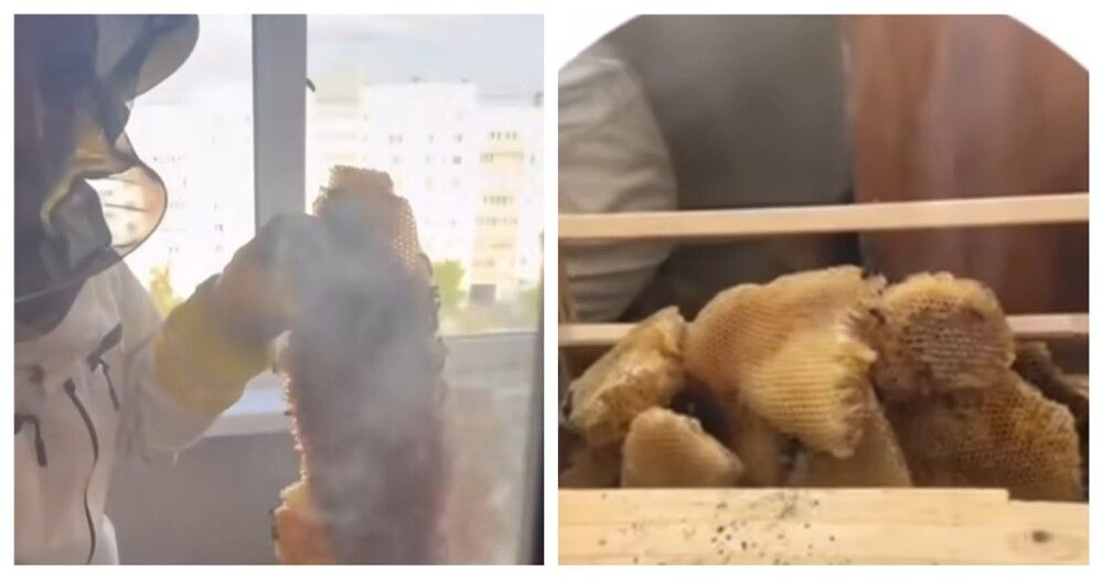 Хозяева квартиры в Казани вскрыли пол на балконе и обнаружили там большое количество пчёл и соты, наполненные медом.