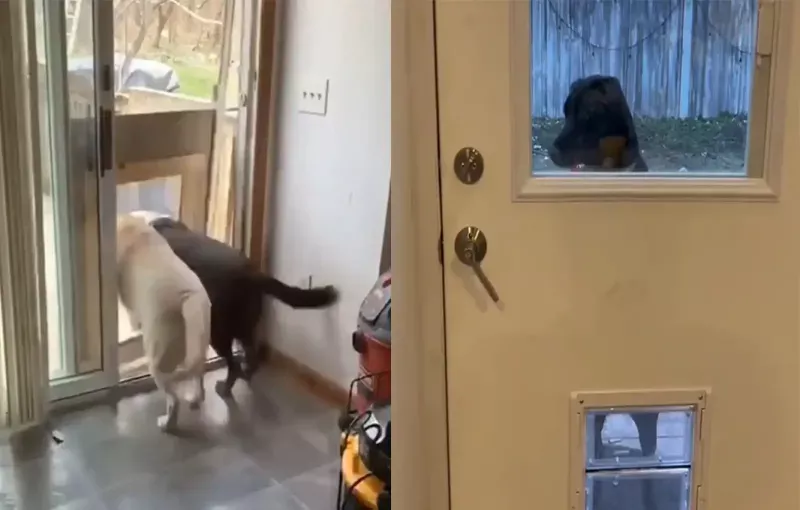 Четвероногие друзья человека продемонстрировали различные реакции на маленькие дверцы, предназначенные специально для них.