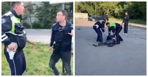 Причины конфликта неизвестны, но на кадрах, снятых свидетелями произошедшего, видно, что молодой человек начал кричать на мужчину в форме. Тот оттолкнул его, после чего завязалась потасовка.