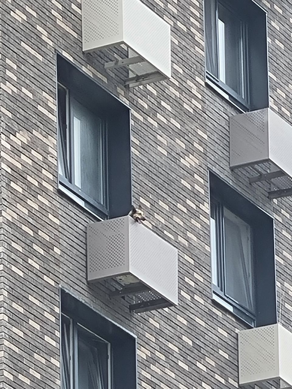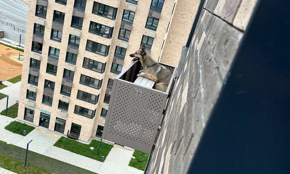 В Южно-Сахалинске собака выпала из окна квартиры на 12 этаже. Она осталась в живых благодаря коробу от кондиционера. Момент спасения собаки попал на видео.