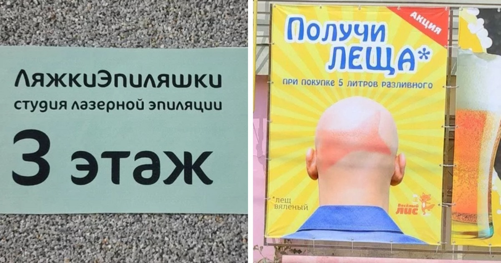 Специалисты в сфере маркетинга должны уметь сделать креативную вывеску или придумать яркий рекламный слоган, который запомнится клиентам. И некоторые мастера выдают такие шедевры, что смотришь и не знаешь, как на это реагировать, но пройти мимо, не заметив, точно не получится.