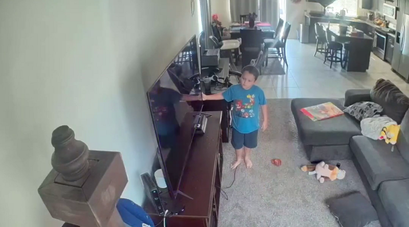 Мальчик сломал телевизор, ударив по нему джойстиком. После инцидента он попытался включить устройство снова, но все его усилия оказались тщетными.