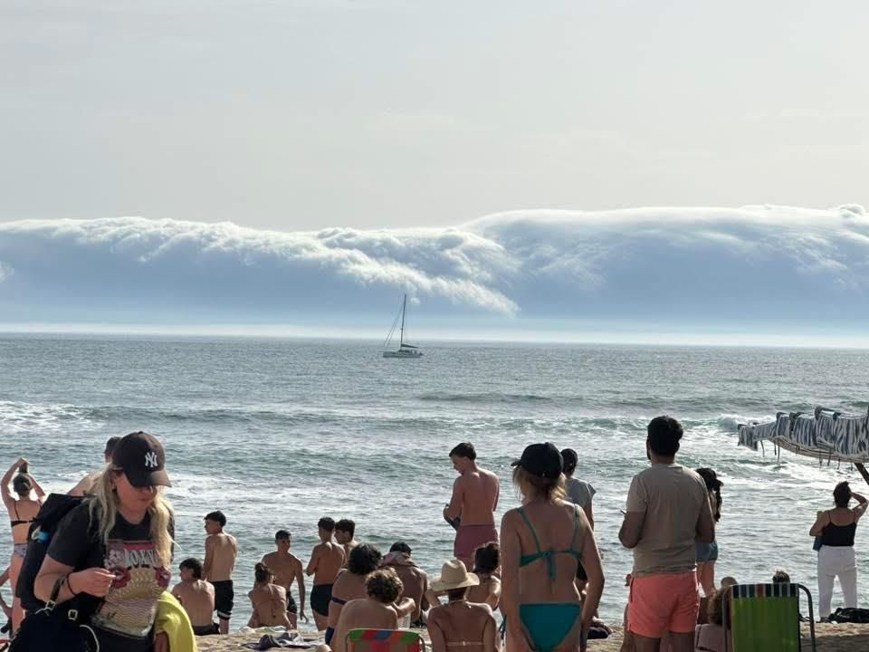 На пляже в Повуа-де-Варзин люди встали как вкопанные. Из-за океана на берег медленно шло что-то огромное - белая стена, закрученная в трубку. Кто-то достал телефон. Кто-то схватил ребёнка. Кто-то просто молча смотрел. Это "рулонное облако" (roll cloud), которое появляется, когда тёплый воздух у земли сталкивается с холодным морским.Такие штуки случаются раз в несколько лет и выглядят как начало апокалипсиса. Облако пронеслось вдоль побережья - его видели и в Вила-ду-Конди, и в Фигейре-да-Фош. Говорят, в Австралии за такими облаками охотятся.