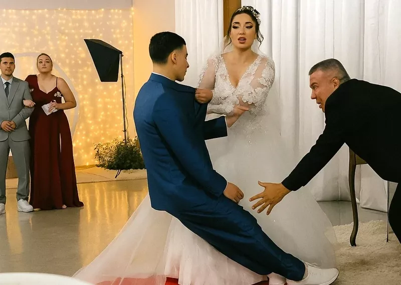 В бразильском городке Салете произошло необычное событие, когда 25-летний жених Густаву Шмиц стоял у алтаря вместе со своей возлюбленной 23-летней Памелой. Однако внезапно мужчина потерял сознание, а более 200 гостей были шокированы увиденным. Несмотря на попытки невесты и священника удержать его на ногах, сам мужчина после торжества рассказал СМИ, что же произошло в день его свадьбы.Ролик с падением мужчины у алтаря стал очень вирусным среди бразильских пользователей - он набрал почти 6.8 млн просмотров, и почти 338 тыс. лайков с десятками комментариев под видео. На кадрах можно увидеть, как мужчина с женщиной стоят у алтаря, священник начинает произносить слова клятвы, и в этот момент жених потерял сознание у алтаря перед 200 гостями."Неделя перед этим была насыщенной всеми приготовлениями. Сам день был весь в спешке: гости уже прибывали, и было много дел, которые нужно было решить. Я и так годами боролся с тревожностью - иногда я принимаю от нее лекарства, но когда начались торжества, то я занервничал", - рассказал Густаву.Он добавил, что когда началась церемония клятвы, и они должны были пройти по красной дорожке к алтарю, то он сообщил ей, что нехорошо себя чувствует. Девушка подумала, что ее избранник шутит, однако "она не осознавала, насколько это серьезно"."Когда я потерял сознание, она схватила мой пиджак, но я упал на ее платье, и она не смогла меня удержать. Пастор подбежал и схватил меня за рукав, чтобы я не ударился головой об пол. Затем мой друг-врач Эдуарду быстро прибежал, проверил мой пульс и вместе с пастором оказал мне первую помощь", - рассказал о ситуации на свадьбе мужчина.