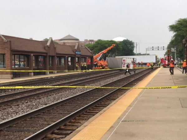Инцидент произошёл при подъезде состава к станции - он врезался в грузовик с прицепом. В результате аварии временно оказались заблокированы три железнодорожные линии