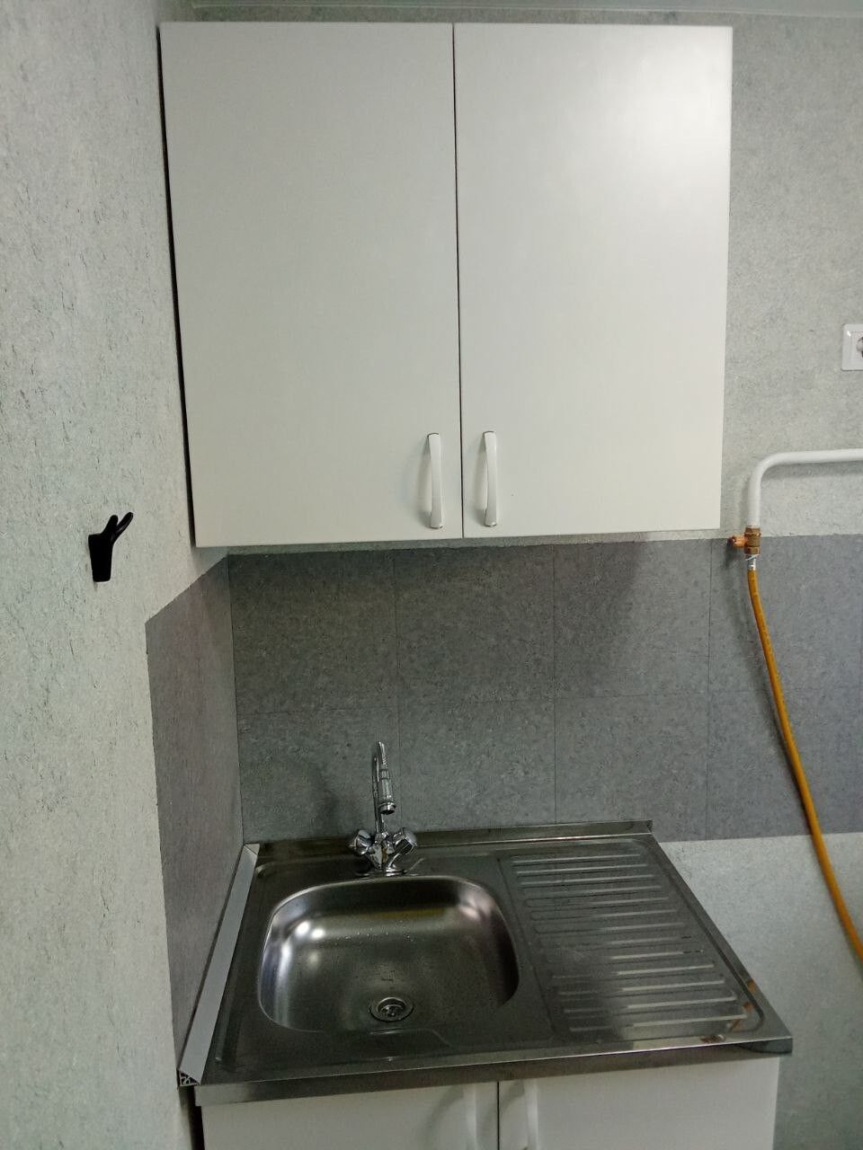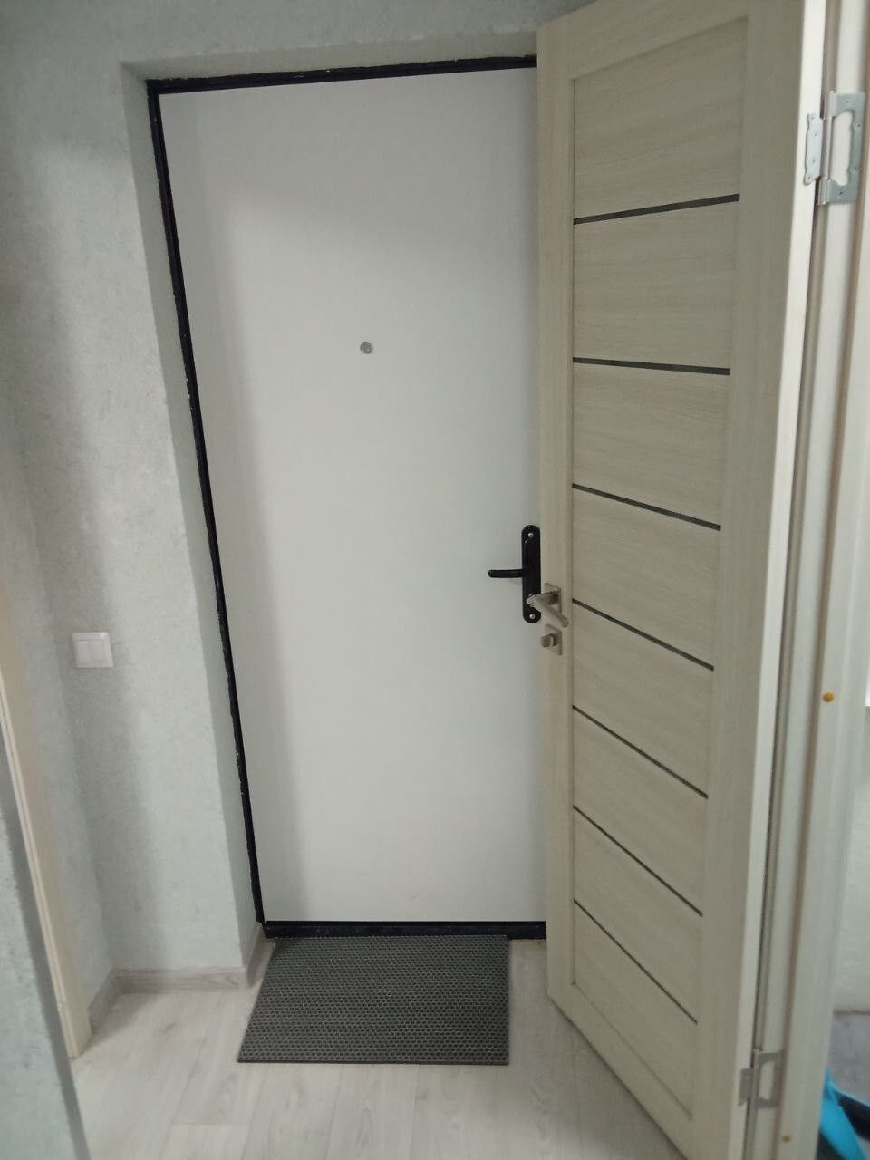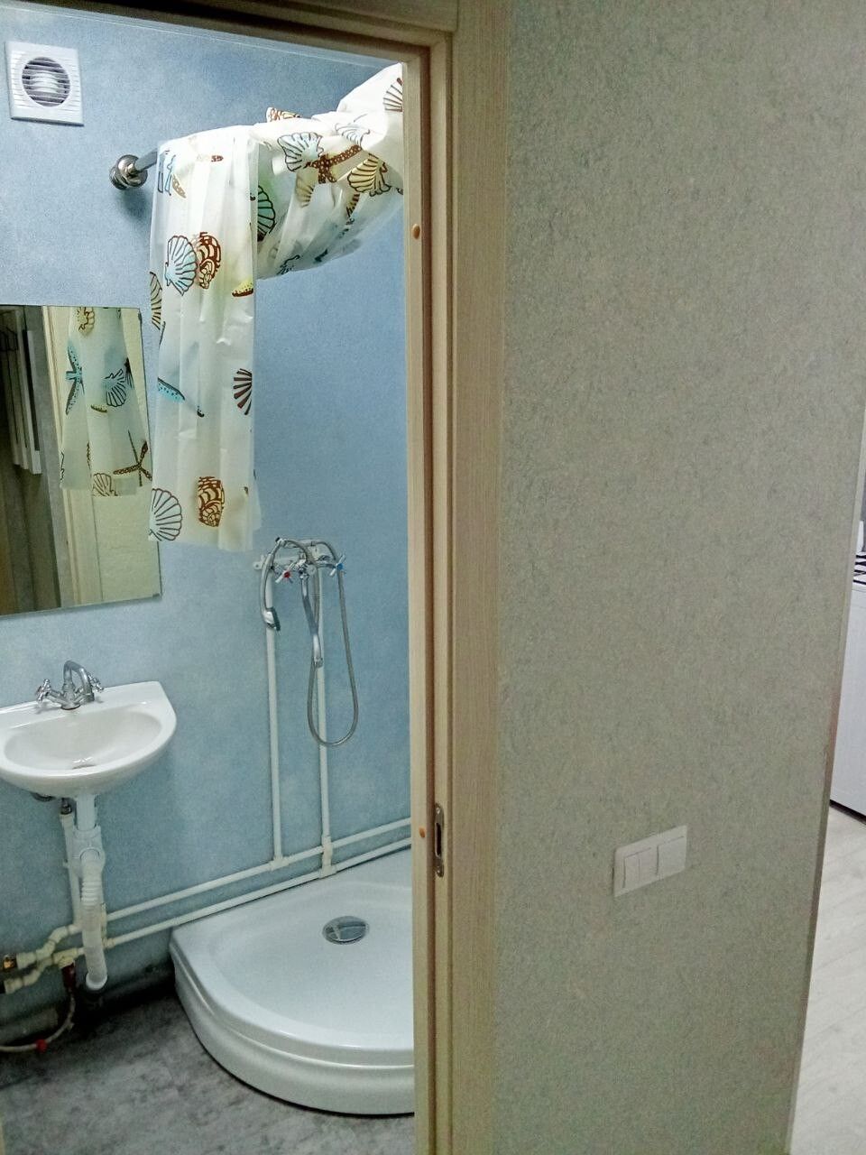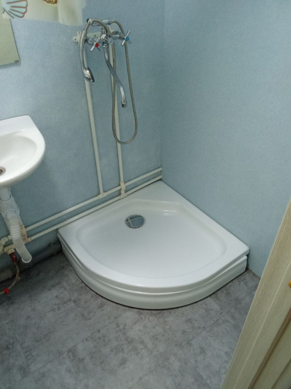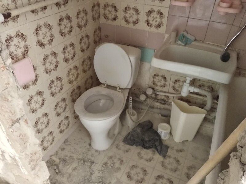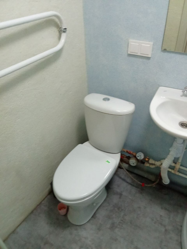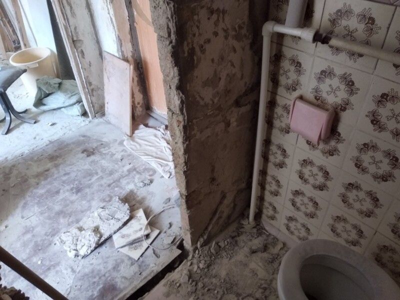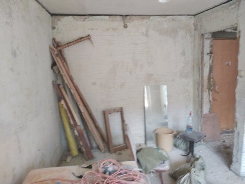 Пришлось подрывать полы в комнате и санузле, так как перепад был 2 см на 1 метр. Заливал специальной смесью. Потом выравнивал. Оштукатурил стены, зашпатлевал, сделал откосы. Электрик поменял всю проводку.