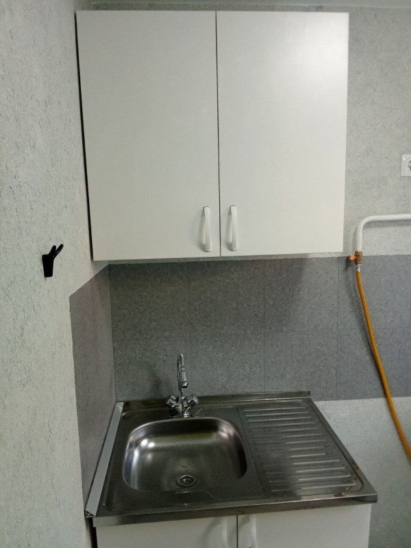 Следующий этап - потолки, санузел. Долго провозился с эксцентриками. Никак не хотели выравниваться нормально. Потратил 2 мотка фум-ленты. Нанёс декоративную штукатурку, жидкие обои, уложил линолеум и ПВХ-плитку, сделал фартук и кое-что по мелочи.