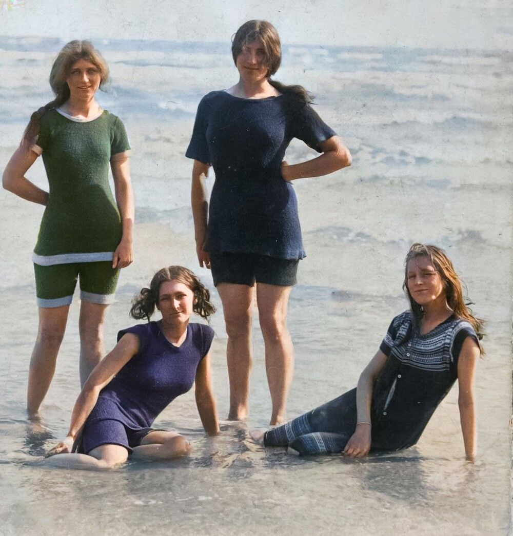 Такие костюмы были данью приличиям эпохи, когда даже в воде нужно было оставаться "достойной дамой". Но со временем мода стала уступать место удобству - и вот уже через пару десятилетий женский купальник превратился из закрытого костюма в символ свободы.