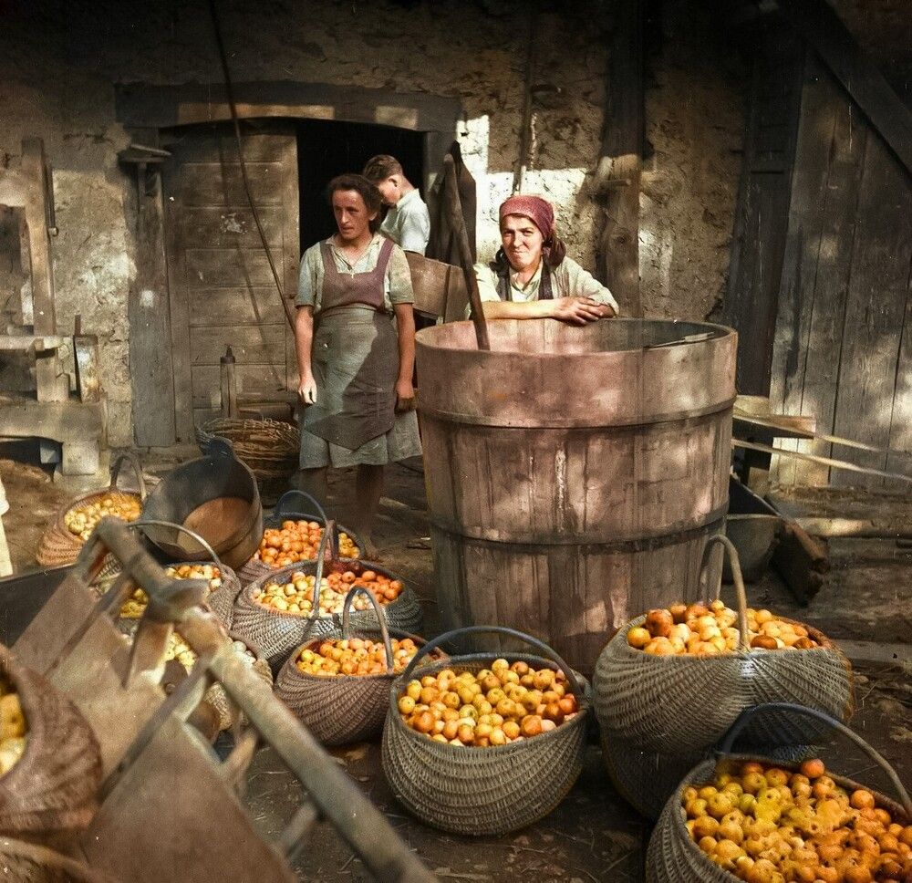Местные жители подготовили чан для приготовления ракии. Ракия - не просто алкоголь, это ритуал, традиция и национальная гордость многих стран Восточной Европы и Балкан.Распространённое сырьё для этого напитка - сливы и виноград, но также используются абрикосы, груши, вишня или малина. Реже применяются персики, яблоки, инжир, ежевика и айва.Обычная ракия - это около 40% крепости. Но если речь о домашней - тут уже посерьёзнее: от 50 до 60 градусов и выше.